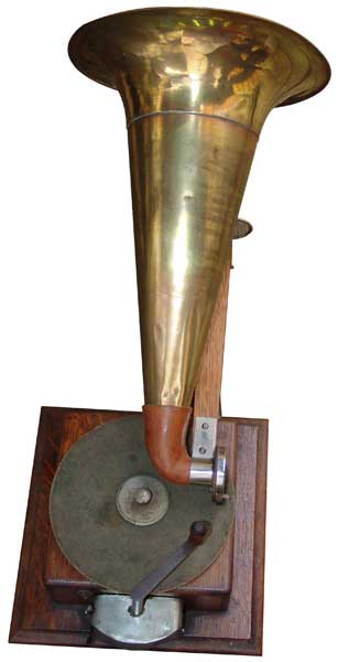 Top view, 7-inch turntable. The horn is witch's hat, brass. 37 cm (14,5 inch) long and 25 cm (10 inch) diameter.